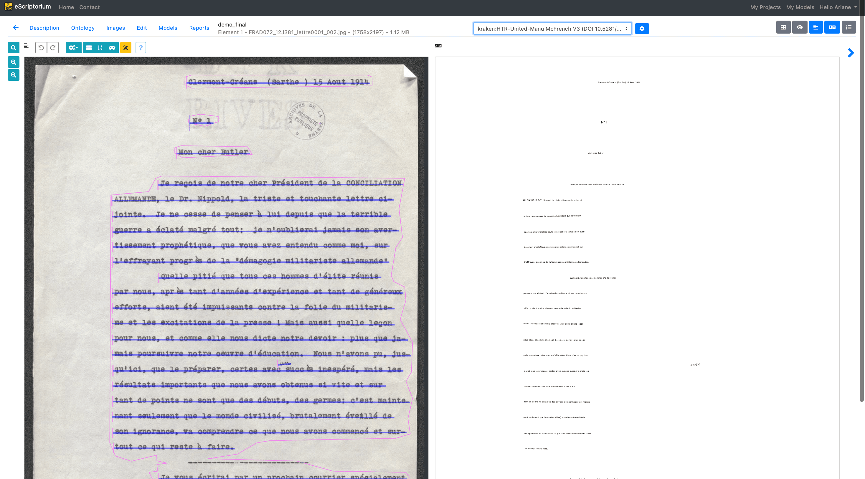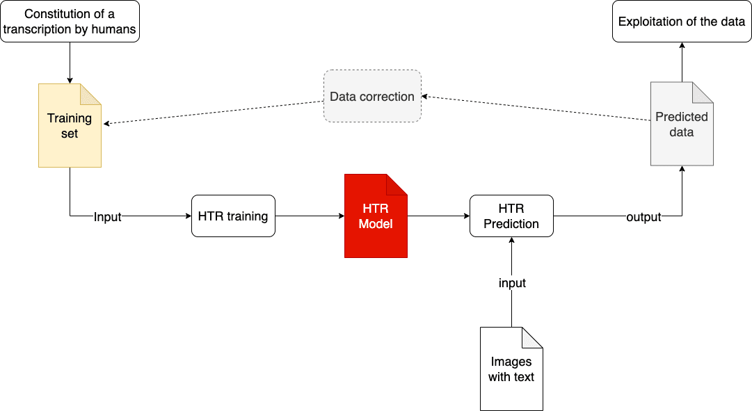 Once the transcription has been predicted by the machine and corrected by a human, the final stage is to export the result from the transcription platform. There are several possible formats for this, such as raw text or XML formats. The choice depends on the goal: what do you need the transcription for? Our video dedicated to these topics and the road map can help you choose the most suitable format.