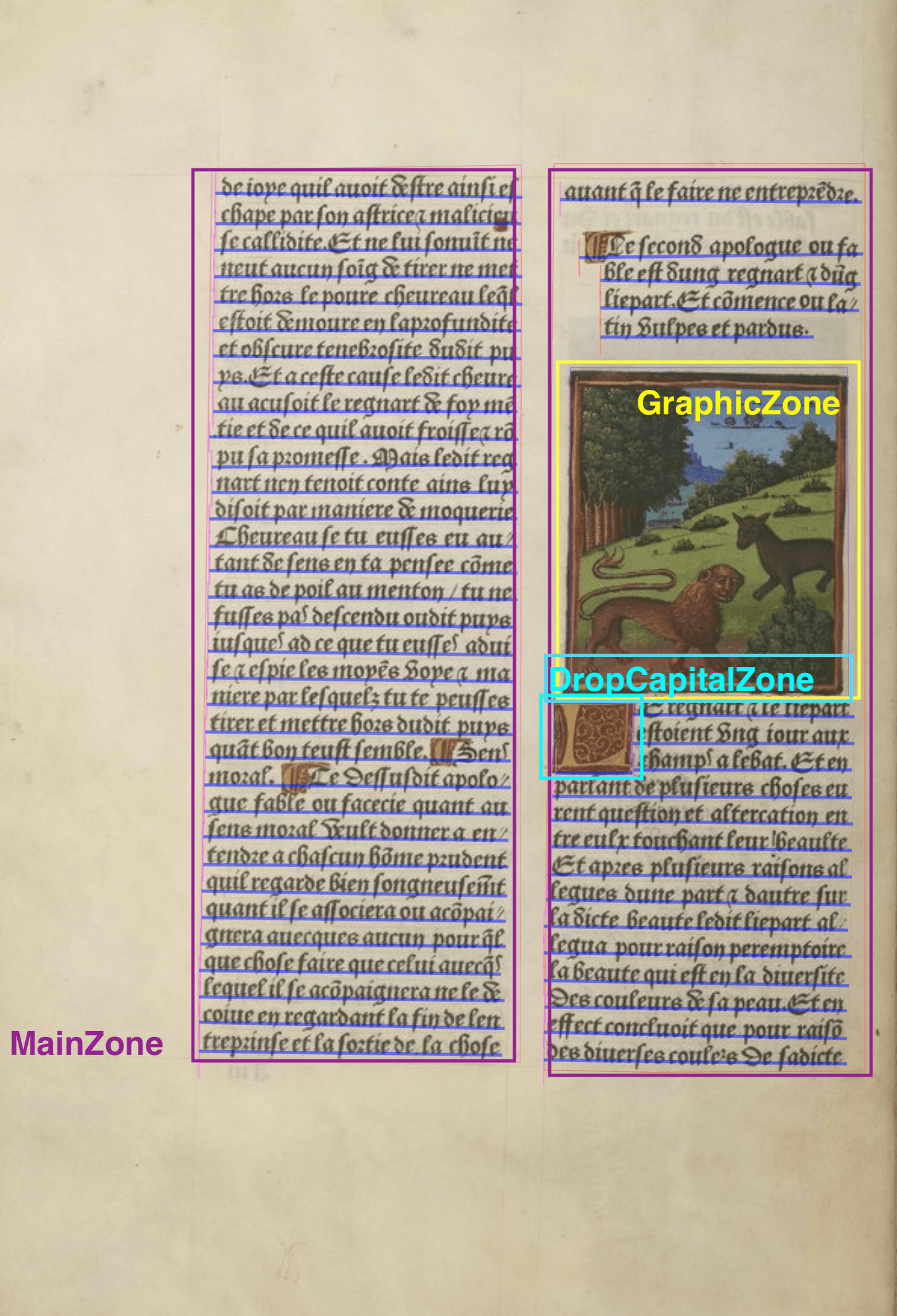 The layout analysis step is essential for defining the layout of the text and locating the titles, subtitles, margins or annotations that accompany the main body of text. To go further refer to the training module: “Layout analysis”.
